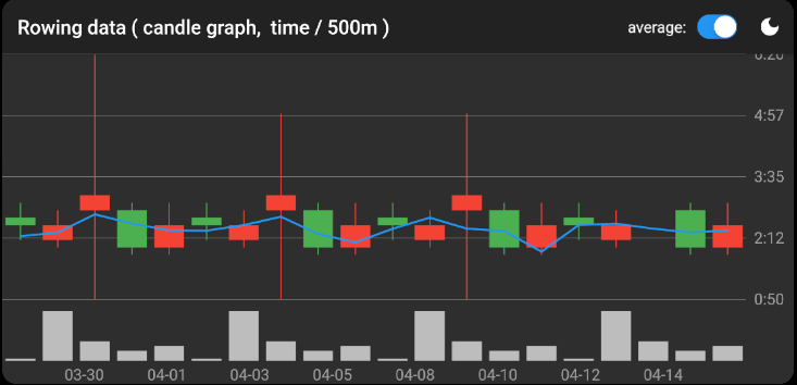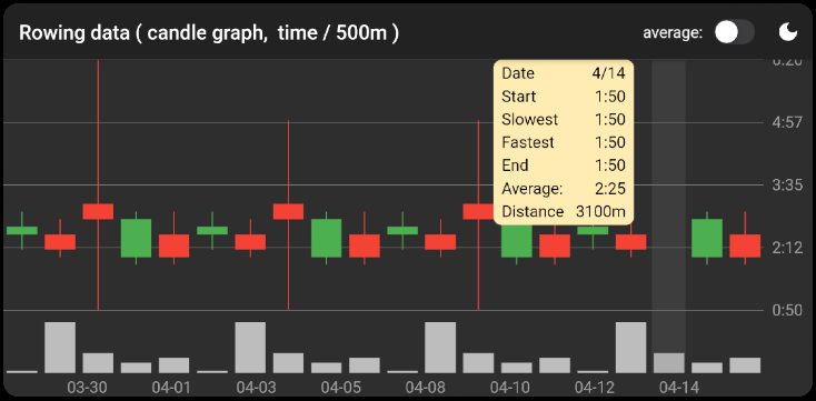 Tap on any bar let you find the basic rowing data about speed and distance of the day as the picture below.
