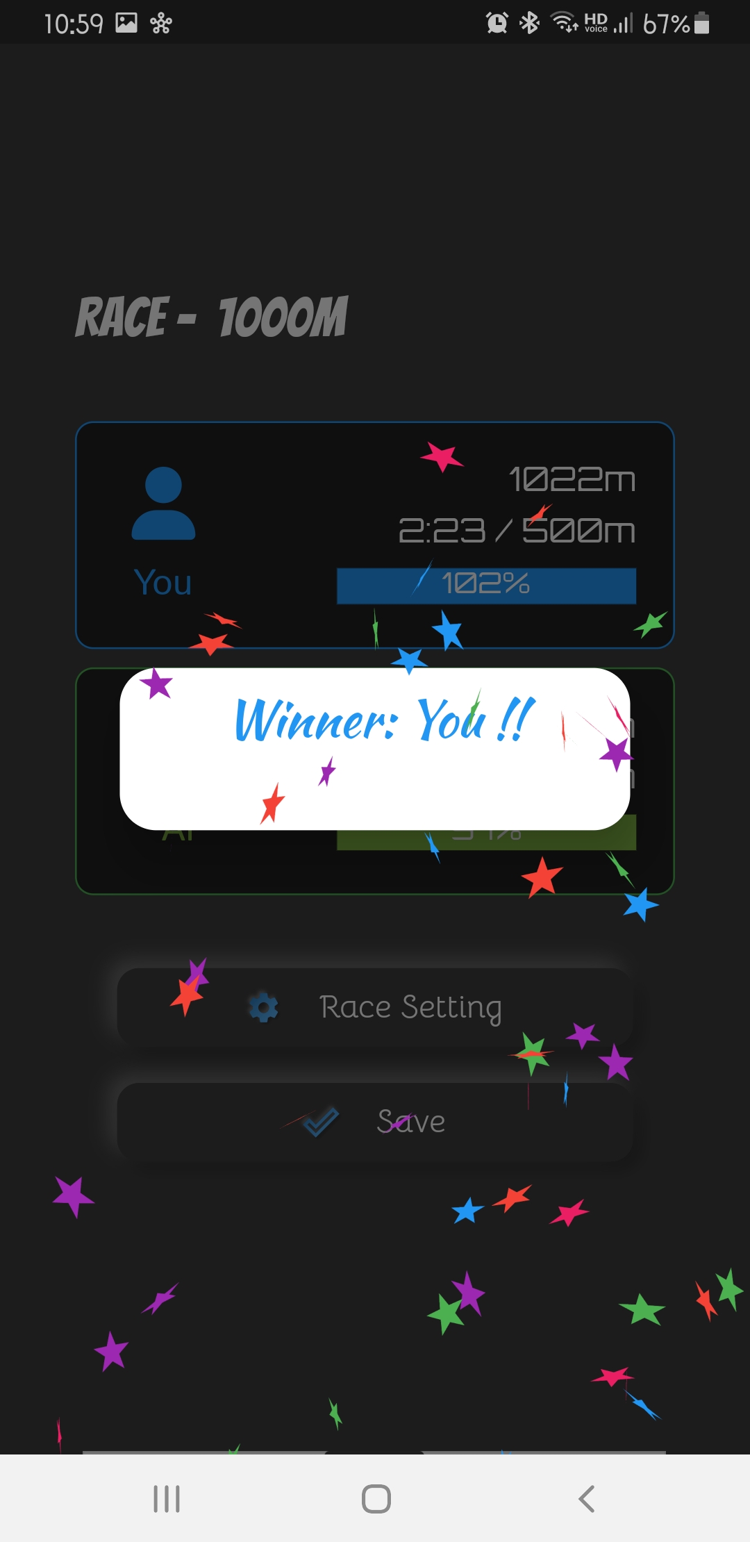 Press the Save button once you finished the race.