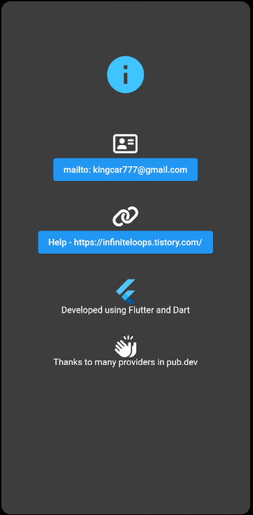 The last explanation is About menu. It is not important information but you need to when you have something to let me know even a complaint. Please feel free to contact me because It should be a great support for this app.
